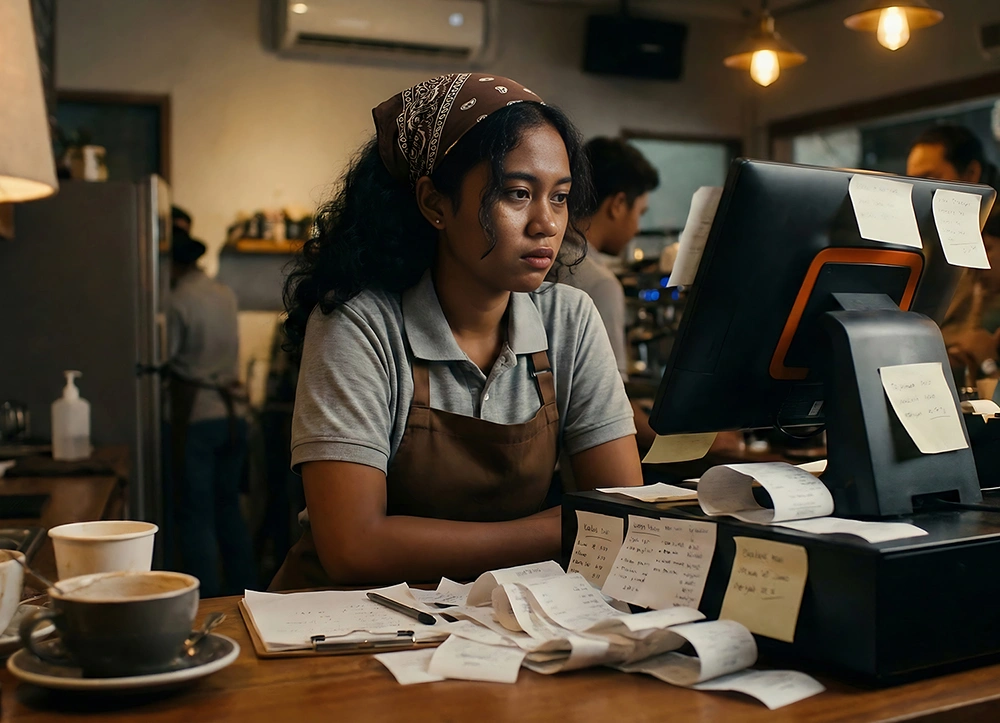 Banyak pemilik cafe mengalami kendala seperti antrian panjang, salah input pesanan, stok tidak terkontrol, hingga laporan keuangan yang tidak rapi.