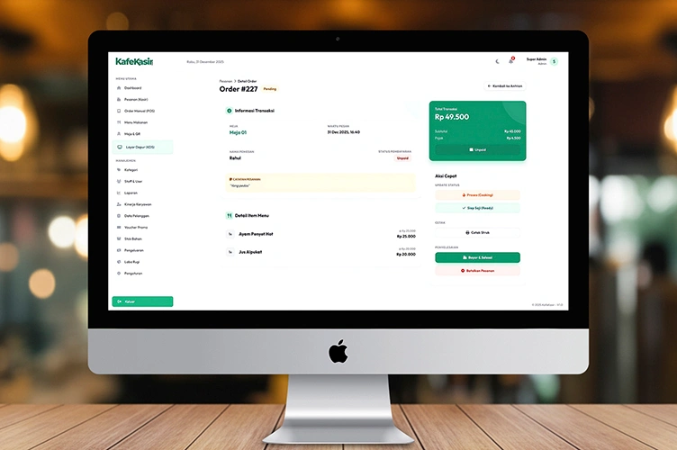 Setiap orderan yang dibuat pelanggan melalui sistem digital akan langsung masuk ke sistem kasir secara otomatis.